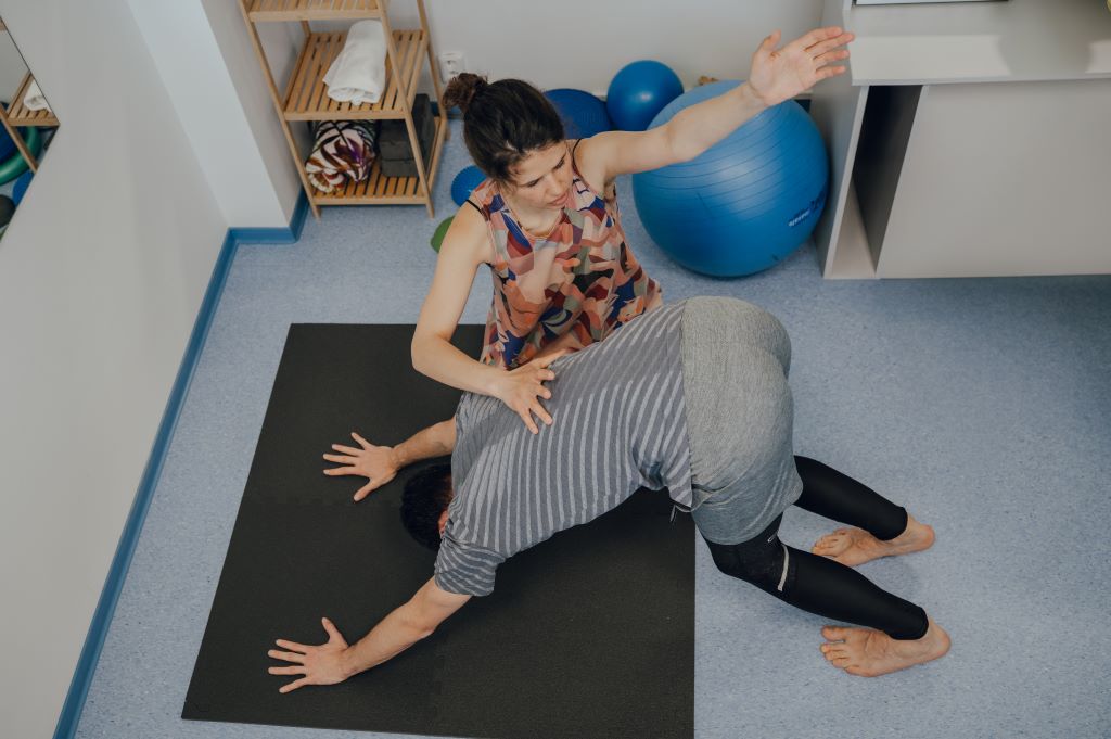 Po zhodnocení stavu klienta následuje terapeutická část, jejíž součástí je manuální ošetření (měkké techniky, kloubní mobilizace, případně kineziotejping).